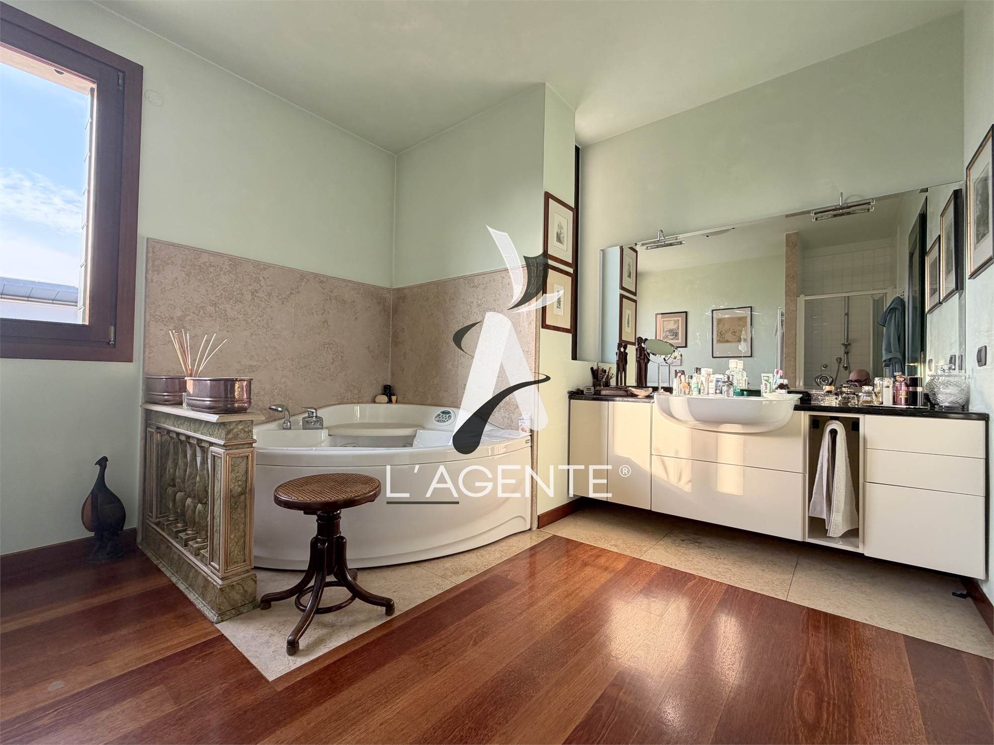 Mestre, zona Favorita, nella più prestigiosa zona residenziale della città, in posizione interna e luminosissima disponiamo di VILLA BIFAMILIARE SIGNORILE con AMPIO GIARDINO PRIVATO, PALESTRA, SAUNA PRIVATA e FINITURE DI PREGIO!!! La soluzione si sviluppa su tre livelli, al piano inferiore troviamo: ampia taverna di oltre 50 mq, vano uso lavanderia, locale tecnico caldaia, comoda sauna e garage doppio! Al piano terra: ingresso nel disimpegno, cucina abitabile con accesso al giardino, cabina armadio, bagno e soggiorno di oltre 60 mq con accesso al giardino; al piano primo: bagno molto grande, studio privato di grandi dimensioni, camera matrimoniale e palestra; al piano primo camera matrimoniale, bagno e angolo studio con vano uso deposito nel sottotetto. All’interno come finiture troviamo: porta blindata all’ingresso, pavimentazione in marmo dappertutto, infissi triplo vetro antisfondamento in metallo OT67 nel soggiorno e in legno doppio vetro nelle restanti, RISCALDAMENTO A PAVIMEMENTO; parquet nella zona notte e in ceramica nel bagno superiore, pavimentazione in marmo e parquet al piano inferiore, sauna interamente in legno, 4 split aria condizionata, impianto fotovoltaico con batterie di accumulo. Al piano terra troviamo 2 posti auto PRIVATI. Esternamente la soluzione si presenta bene e senza alcun lavoro straordinario in previsione. CONTESTO DI PREGIO, caratterizzata da zone verdi, ideale per chi è alla ricerca di ELEGANZA e FUNZIONALITA’, vicino ai servizi e alle principali vie di comunicazione della città!!! DA VEDERE PRIMA CHE SIA TROPPO TARDI!!!